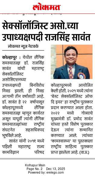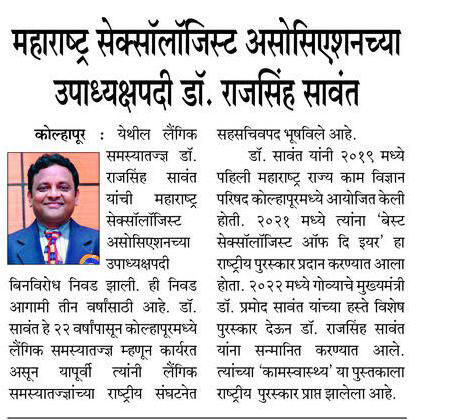 महाराष्ट्र सेक्सॉलॉजिस्ट असोसिएशनच्या उपाध्यक्षपदी डॉ. राजसिंह सावंत